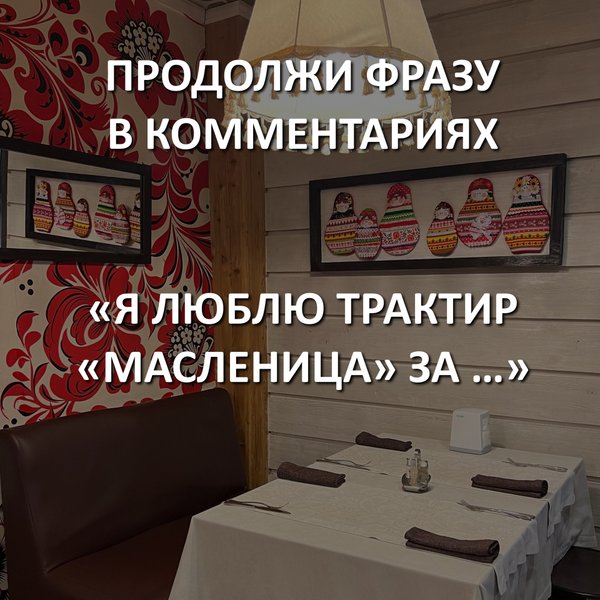Продолжи фразу в комментариях «Я люблю трактир „Масленица“ за »