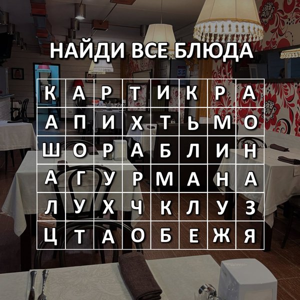 А вы сможете найти все названия блюд, которые мы спрятали? Любители вкусной русской кухни трактира «Масленица» с легкостью справятся с данной задачей! Пиши в комментарии свои ответы