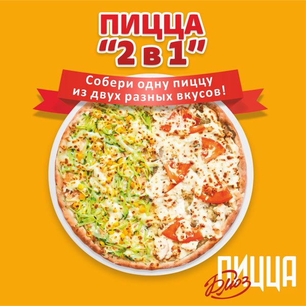 У вас разные предпочтения? Хватит спорить какую пиццу заказать, мы с радостью приготовим пиццу из 2-х половинок ваших любимых пицц!