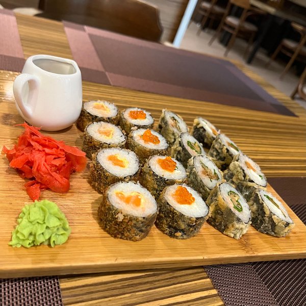 Роллы можно заказать не только на доставку, но и неспешно и размеренно посидеть в кафе и насладиться своими любимыми вкусами