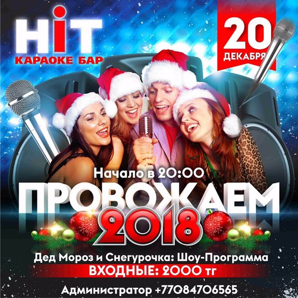 Масса СЮРПРИЗОВ припасена у нас для всех любителей ПЕТЬ 20 Декабря встречаемся в @karaokebar_hit . Провожаем 2018 в компании @den159777 Получаем ПОДАРКИ от доброго Дедушки Мороза и горячей Снегурочки! Радуемся красивым фото на память от @nataliechechulina . НАЧАЛО в 20:00 . Входные: 2000 с человека . KA R A O K E H I T ул Казахстан 59а Администратор .