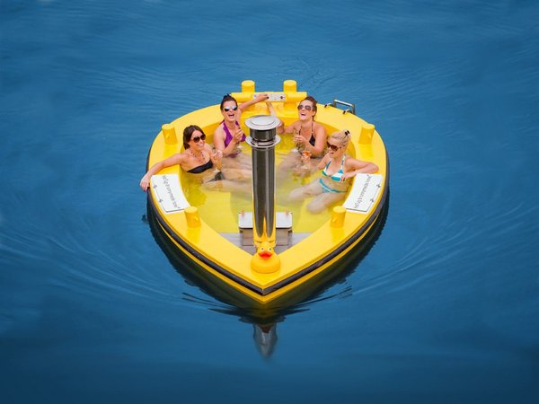 Амстердаме — это особенно приятно — плавать по каналам на закате, окруженным водой и паром с семьей или друзьями, или коллегами, нежиться в теплой ванне среди ледяной воды, наслаждаясь меняющимся вокруг пейзажем. Такая релаксация и отдых на воде надолго запомнятся и будут полезны для здоровья. В лодке можно безопасно плавать в любом водоеме, даже в море. Специальная конструкция обеспечивает ее непотопляемость. HotTug — очень маленькое, но вместительное судно: в него помещается от шести до восьми человек. В передней части лодки расположена подводная дровяная печь — она нагревает воду в лодке до 38 градусов по Цельсию в течение нескольких часов. Можно сразу наполнить лодку горячей водой, в таком случае печь понадобится только для поддержки температуры воды во время прогулки. HotTug вмещает около 1800 литров воды. Время заполнения ванны зависит от толщины шланга и давления. Лодка оснащена профессиональным электродвигателем Minn Kota. Minn Kota Motors — известная американская компания, более 70 лет производящая двигатели для лодок. Лодку-джакузи могут взять напрокат жители Нидерландов, жители других стран — могут заказать и купить. Причем заказать лодку можно в любом цвете и нанести свой логотип, название, любой рисунок — персонифицировать ее по своему вкусу. Вес лодки 750 кг, ее могут доставить в любую страну мира.