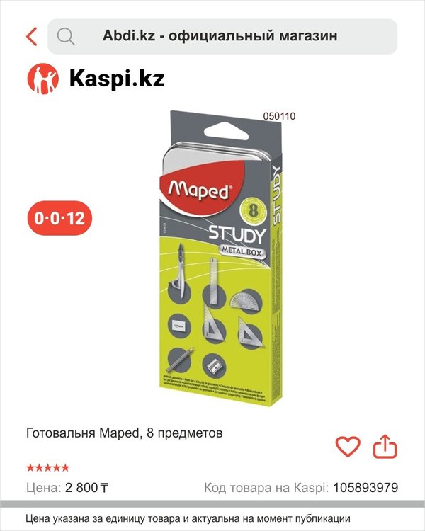 ыларына графикалық және сызбалық жұмыстарды орындауға жарамды. Ықшам корпус заттарды жоғалтуға мүмкіндік бермейді және оқушының кез-келген сөмкесіне сәйкес келеді. Друзья, отличная новость! Теперь ABDI доступен в Kaspi Магазине! Вы можете приобрести оригинальные канцелярские товары от ABDI по выгодным ценам — легко, удобно и в любое время. Откройте для себя широкий ассортимент в «Abdi.kz – официальный магазин» и наслаждайтесь удобством простотой онлайн-покупок с Kaspi! Быстро, просто, удобно — выбирайте лучшее с ABDI. Например, Готовальня — набор чертежных инструментов, заключенный в специальный фуляр. Подойдет для выполнения графических и чертежных работ ученикам старших классов и студентам начальных курсов. Компактный футляр не позволяет потерять предметы, и уместиться в любую сумку ученика.