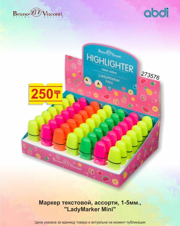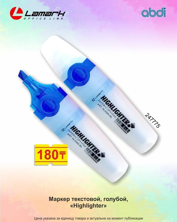 Сүйікті кітабыңызды оқығанда немесе маңызды жазбаларды қарастырғанда, ең басты сәттердің бірден көзге түскені жақсы. Мәтіндік маркер қажетті жолдарды айқындап, мәтінмен жұмыс істеуді одан әрі жағымды етеді. ABDI дүкендерінен мәтіндік маркерлерді таңдаңыз! Когда читаешь любимую книгу или разбираешь важные записи, хочется, чтобы самые главные моменты бросались в глаза. Текстовый маркер подчеркнёт нужные строки и сделает работу с текстом приятнее. Выбирайте текстовые маркеры в магазинах ABDI!