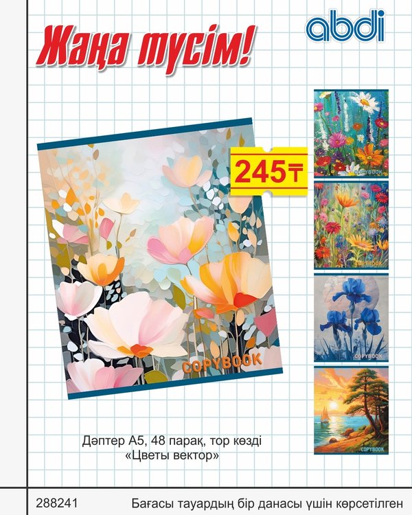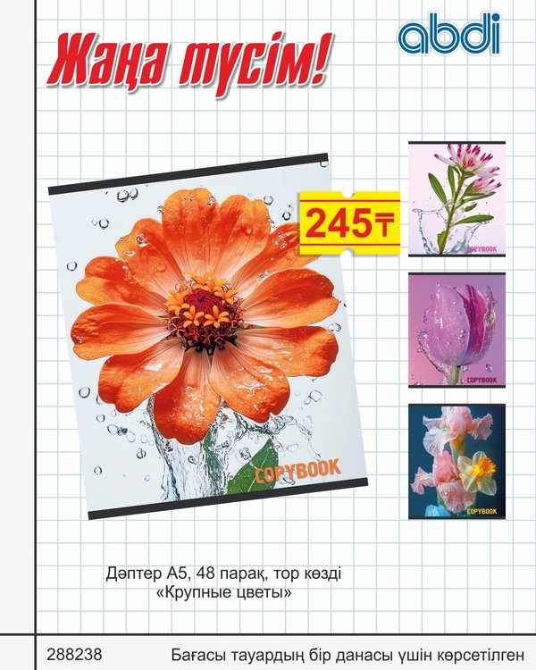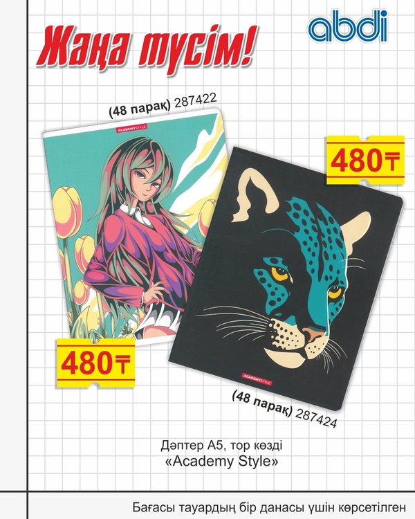 Достар, баланы мектепке тиімді дайындап үлгеру үшін аз-ақ уақыт қалды! Оқушыңызда мектепке қажетті кеңсе тауарларының барлығы жетерліктей болғанын қамтамасыз етіңіз! Мектепке арналған 48 п. дәптерлер үлкен ассортиментін қолжетімді бағада ABDI дүкендерінен сатып алыңыз. Друзья, осталось не так много времени, чтобы успеть выгодно собрать ребёнка в школу! Позаботьтесь о том, чтобы у Вашего школьника были все необходимые канцелярские товары для учёбы! Большой ассортимент тетрадей 48 л. для школы по привлекательным ценам в магазинах ABDI.