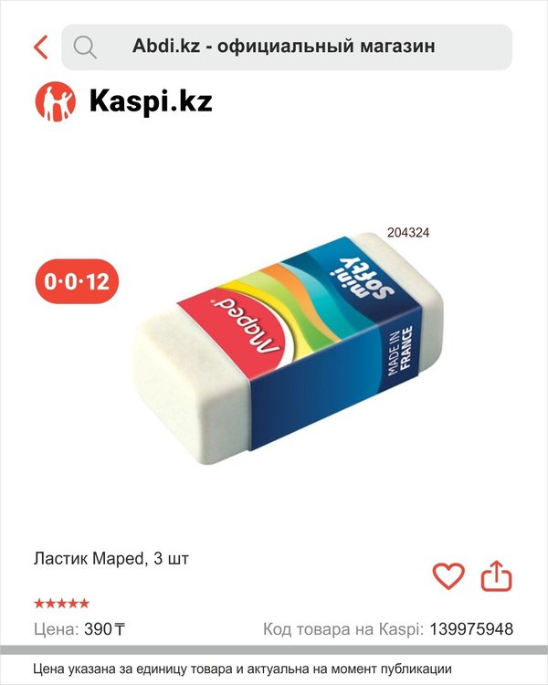 оларды мектеп оқушылары мен студенттер үшін, сондай-ақ ұсақ бөлшектермен жиі жұмыс істейтіндер үшін өте қолайлы етеді. «Mini Softy» өшіргіштері — қағазбен күнделікті жұмыста сапа мен қолайлылықты бағалайтындар үшін тамаша таңдау. Друзья, отличная новость! Теперь ABDI доступен в Kaspi Магазине! Вы можете приобрести оригинальные канцелярские товары от ABDI по выгодным ценам — легко, удобно и в любое время. Откройте для себя широкий ассортимент в «Abdi.kz – официальный магазин» и наслаждайтесь удобством простотой онлайн-покупок с Kaspi! Быстро, просто, удобно — выбирайте лучшее с ABDI. Например, Ластики «Mini Softy» белого цвета от Maped — это качественные и удобные канцелярские принадлежности, которые обеспечивают чистое и аккуратное стирание. Имеют компактный размер, что делает их идеальными для школьников и студентов, а также для тех, кто часто работает с мелкими деталями. Ластики «Mini Softy» — это отличный выбор для тех, кто ценит качество и удобство в повседневной работе с бумагой.