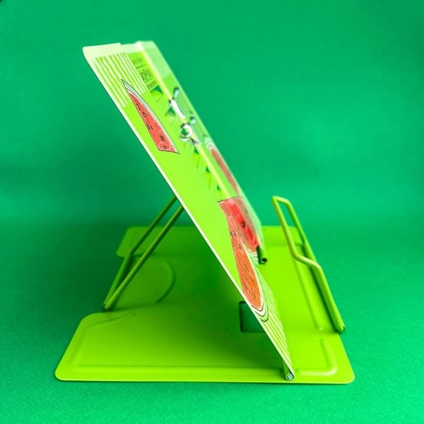 имным механизмом для страниц от Bruno Visconti. Несколько ступеней спинки позволяют использовать ее в соответствии с индивидуальными предпочтениями и привычками и читать книгу под разным уровнем наклона. Подставка легкая, прочная и компактная — не займет много места в школьном рюкзаке. В ее основании есть резиновые стопоры, которые уберегут подставку от скольжения, а стол — от царапин. Яркий и позитивный дизайн не оставит никого равнодушным.