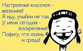 Несмотря на хмурую погоду и капающий дождик, нужно увидеть что-то хорошее в этом дне. Например, нет изнуряющей жары и сегодня пятница! Друзья, учитесь радоваться мелочам! Хорошего вам настроения!