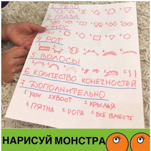 Девчонки и мальчишки! А также их родители, бабушки, дедушки и все-все-все! Знакомьтесь #игравыходногодня! Называется — «Нарисуй монстра»!Супер идея для проведения семейного досуга всей семьёй! Все что вам потребуется — это игральный кубик, иии.. хорошее настроение!!! Бросаем кубик и рисуем монстрика по запчастям! А дальше придумываем имя, смеёмся над результатом, иии… рисуем нового!!!! Впереди выходные! Рисуйте и отмечайте нас, нам будет очень интересно посмотреть, что у вас получилось