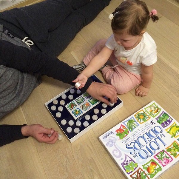 олнить все игровое поле баночками-рассеивателями, передающими запахи изображенных на картинках предметов. Когда все ячейки игрового поля заполнены, можно проверить себя, перевернув баночку-рассеиватель вверх дном. На каждой баночке с обратной стороны написано название и есть порядковый номер. В наборе запахи: эвкалипт, клубника, костер, яблоко, апельсиновый цветок, грибы, грейпфрут, банан, дыня, лаванда, ваниль, ландыш, печенье, фиалка, лимон, сосна, кокос, фенхель, орех, мята, жимолость, абрикос, роза, мыло, апельсин, трава, ананас, море, черная смородина, мёд. Что касается запахов, то они оказались совсем не резкими и не приторными и очень схожи с натуральными. Сами запахи — это эфирные масла, выдержки из натуральных растений. При правильном использовании, т.е. если закрывать и не путать крышечки, срок годности 10 лет! Классно же! Эта игра подойдёт, как совсем маленьким деткам от 1 года, которые только познают мир, так и уже старшим девочкам, а может и мальчикам, осваивающим азы парфюмерии. ~~~ Настольная игра «Лото запахов» Цена: 24 600 тенге ~~~ Заказываем! Доставка по БЕСПЛАТНО