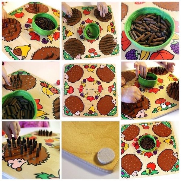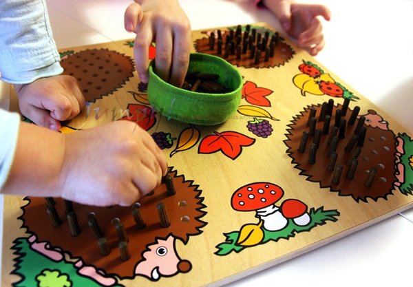 как и все игры этой фирмы, имеет несколько уровней сложности. Самый младший игрок кидает кубик и берет себе из корзины столько иголок, сколько точек выпало на грани кубика, и заполняет полученными иголками спинку своего ежика. Далее, ход передается следующему игроку. Победил тот, чей ежик быстрее всего покрылся 30 колючками! Для более старших детей в игре есть возможность повторить сложение. Кидаем оба кубика, считаем общее количество выпавших точек и берем соответствующее количество иголок. А совсем малыши, которые не хотят или не умеют еще играть по правилам, будут рады в произвольном порядке помогать малышам-ежикам. Также, не могу не отметить, что с изнанки у доски есть замечательные ножки, которые помогут сохранить стол без царапин. Мелочь, а приятно! Вот такая веселая игра! А если еще прибавить сюда, что это СУПЕР тренажер для всеми любимой моторики, то цены этой игре не будет!)))) ~~~ Настольная игра «Ежики» Цена: 20 200 тенге