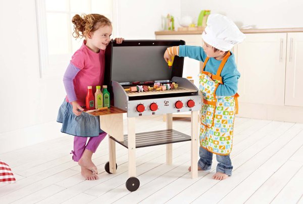 Лето — пора шашлыков! Теперь ваш ребёнок тоже сможет угостить своих друзей вкусным барбекю. Этот гриль совсем как настоящий!! Под поддоном находится полочка, где можно поместить необходимые аксессуары для приготовления шашлыков. Две ножки оснащены колёсиками, поэтому оборудование можно перемещать в любую сторону. В набор включены аксессуары и еда — два вертела, две рыбы, два стейка, две части колбасы, два кусочка зеленого перца, две куриных части, две креветки, два гриба, две части тофу, бутылка кетчупа и горчицы и одна пара щипцов. Игровой… — Читать дальше