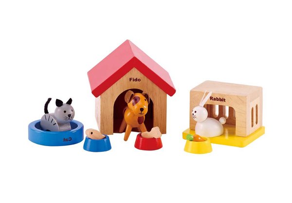 В комплекте три зверька: собачка, кошечка и кролик. У каждого есть собственный домик, тарелочка, корм. Остаётся только вовремя их кормить и играть с ними.
