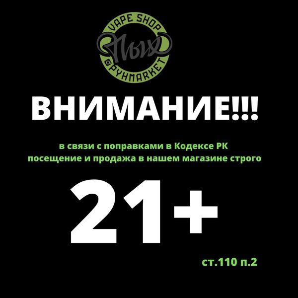 В связи с поправками в Кодексе РК «О Здоровье народа и системе здравоохранения», продажа и нахождение в нашем магазине только с 21 года и при наличии удостоверения!! . Просим всех отнестись к этому с пониманием и не тратить наше время на уговоры о продаже, если Вам нет 21 года‼️ ___________________________________________ пшоп