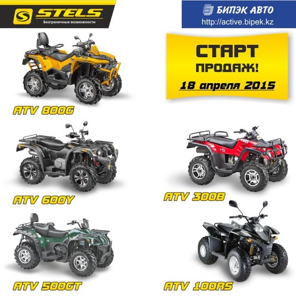 Если вы любите приключения и вам не чужд дух авантюризма, техника STELS — это то, что вам нужно! Добавьте в свою жизнь массу ярких впечатлений, управляя мощным железным конем, и вы получите ни с чем несравнимое удовольствие! БИПЭК АВТО объявляет о старте продаж техники STELS для активного отдыха! Узнать более подробную информацию можно на сайте: