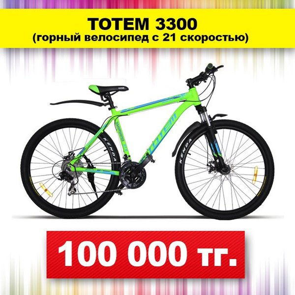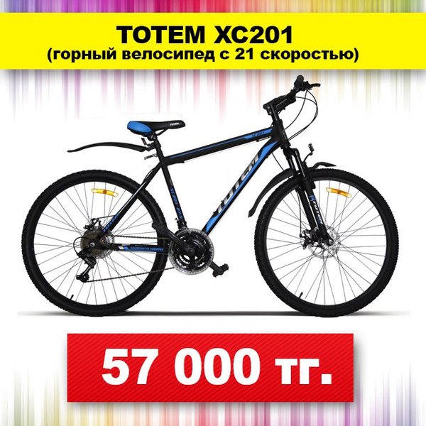 В филиальной сети «Бипэк Авто Казахстан» представлен широкий ассортимент горных велосипедов. Один из них — яркий и стильный Totem 3300. С техническими характеристиками велосипеда можно ознакомиться на сайте: