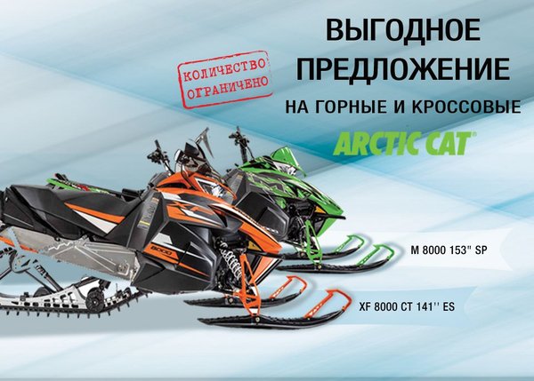 ВЫГОДНОЕ ПРЕДЛОЖЕНИЕ на горные и кроссовые снегоходы ARCTIC CAT Спешите, количество снегоходов по специальной цене ограничено! Подробности на сайте: active.bipek.kz и в филиалах «БИПЭК АВТО» в Вашем городе