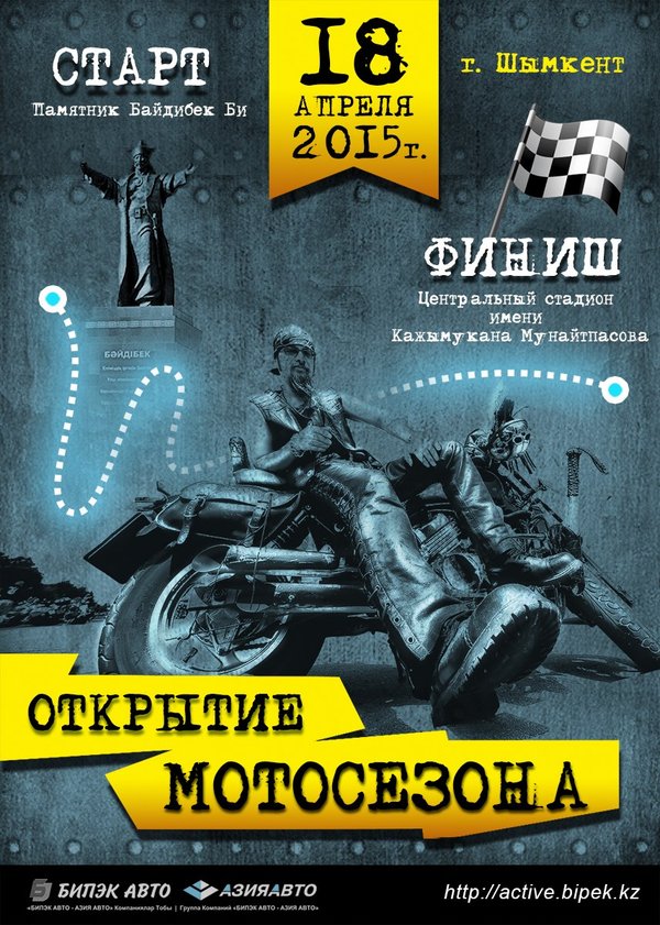 Дорогие друзья! 18 апреля в городе Шымкент состоится открытие мотосезона. У Вас будет возможность лично познакомиться с мототехникой Arctic Cat, Racer и оценить ее качество. Ждем Вас 18 апреля в 09:00. Место сбора: памятник Байдибек Би. Приходите, будет интересно!