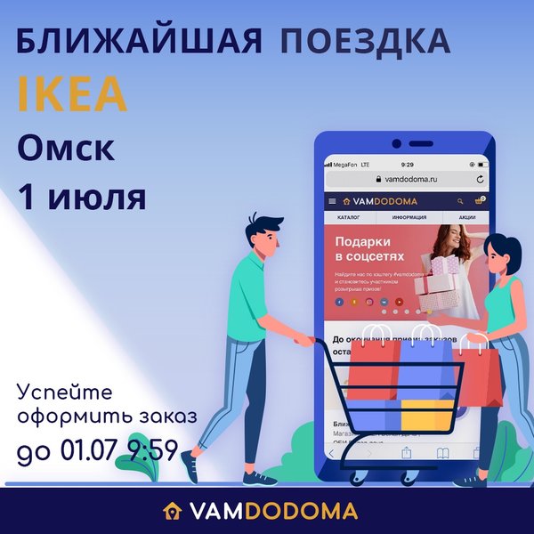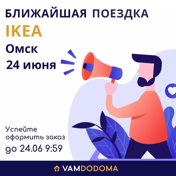 Ближайшая поездка в магазин IKEA Омск 1 июля Успейте оформить доставку до 1 июля 9:59 Оформить заказ можно на сайте vamdodoma.kz Доставка: До дома: 06.07 и 07.07, Сб, Вс Самовывоз: 06.07, Сб c 14:00 г. Усть-Каменогорск, ул. Сагадата Нурмагамбетова д. 55 | | Ежедневно с 9 до 20