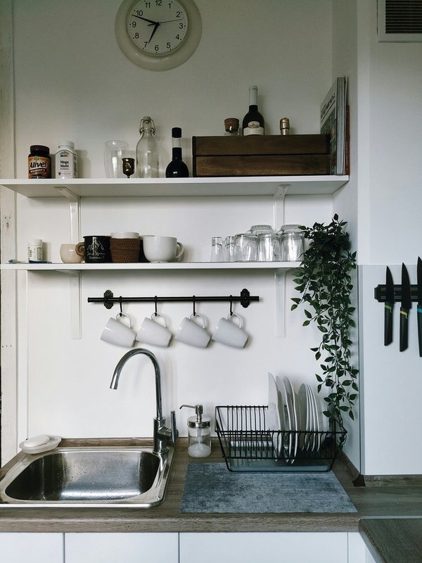 Все еще считаете, что открытые полки в кухне — это неудобно? А может быть, вам кажется, что они уже стали обыденностью? Мы хотим переубедить вас и подсказать классные идеи открытого хранения, которые реально реализовать даже своими руками, используя товары ИКЕА! На фото: ФИНТОРП Рейлинг, черный Арт. номер: 803.813.45 ЛАКК Полка навесная, белый Арт. номер: 803.794.94 ФИНТОРП Сушилка посудная Арт. номер: 303.813.38 ФИНТОРП Крючок, черный Арт. номер: 903.813.40 ФИНТОРП Магнитная планка Арт. номер: 103.813.44