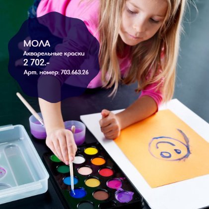 Детская акварель должна быть не только яркой и простой в использовании, но и безопасной для кожи ребенка! Серия МОЛА — это то, что нужно вашему ребенку для творчества и уроков! МОЛА Акварельные краски 2 702.– Арт. номер: 703.663.26
