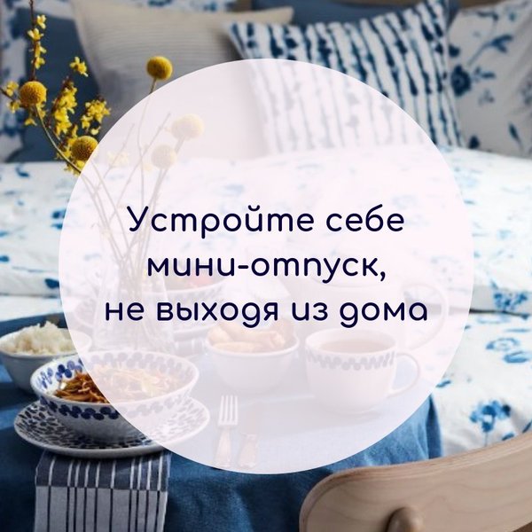сь в долгожданное чтение. Или отправьтесь в виртуальный тур по музею. Что бы вы ни выбрали, море декоративных подушек и покрывал обеспечат вам максимум комфорта. 1 час Мини-спа-процедура Укомплектуйте тележку всем необходимым, чтобы быть готовыми побаловать себя в любой момент, как только представится такая возможность. Закрепите на душевой лейке веточки лаванды, розмарина или эвкалипта (а все остальное сделает пар). Ну вот, ваша благоухающая спа-зона готова. 2 часа Полная тишина — идет сеанс Переоденьтесь в пижаму, прихватите с собой миску попкорна и задерните шторы. Установите ноутбук на подставку, приглушите свет, чтобы не напрягать глаза, — и ваш импровизированный домашний кинотеатр готов открыть для вас двери в другую реальность.