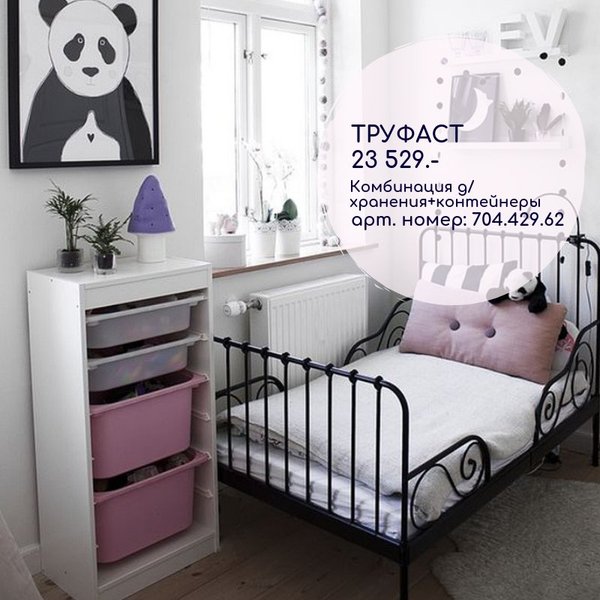 В Икее можно найти все, что нужно для обустройства идеальной детской — от кровати до игрушек. Поэтому обустроить комнату для маленькой принцессы не составит особого труда! Вдохновляйтесь нашей подборкой и советами! Старайтесь уйти от гарнитурности, комбинируя мебель из разных серий Смело беритесь за переделки мебели или декора, чтобы персонализировать интерьер и сделать его веселее Не бойтесь заглядывать в другие отделы! Нужные вещи можно поискать в отделах товаров для ванной комнаты, кухни или сада