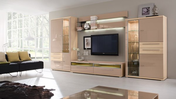 Сливочные оттенки глянцевых фасадов в сочетании со светлой древесной текстурой гостиных ESTE помогут создать в вашем доме по-настоящему европейский интерьер. Коллекцию отличают актуальные цвета и фактуры, изысканные дизайнерские решения и максимальная функциональность. Вместительные шкафные модули и витрины выполнены из стекла и глянца, поэтому смотрятся очень легко и стильно.