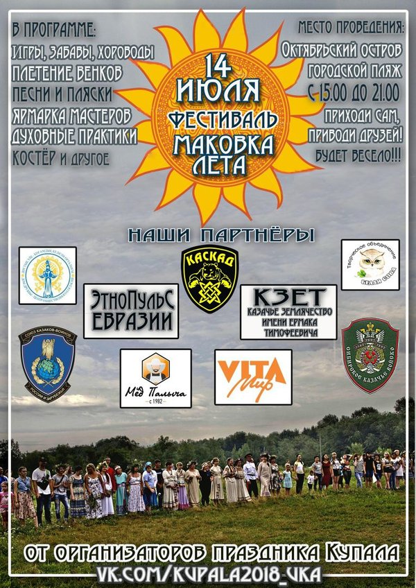 Иду на фестиваль «Маковка лета» (и организую его)!!! ЗА РЕПОСТ — ЧАШКА АРОМАТНОГО ЧАЯ НА ФЕСТИВАЛЕ (и я не шучу)!!! --- В НОЧЬ на ИВАНА КУПАЛА (09.07.2018): Друзья, 14 ИЮЛЯ 2018 г. в 15—00 мы снова соберёмся на ФЕСТИВАЛЕ, посвященном середине лета -«МАКОВКА ЛЕТА»! в г. Усть-Каменогорск на Октябрьском острове (Городской пляж)! Что нас ждёт: На празднике будет организована ярмарка мастеров Игры, забавы, хороводы Концертная программа, песни, танцы Пир горой Мастер-классы, женские полянки, казачьи забавы, энергетические практики Купание в в… — Читать дальше
