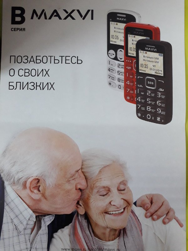 Сотовые телефоны Maxvi серия В созданы специально для пожилых людей. Крупные кнопки, крупный шрифт на экране, никаких лишних функций, наличие кнопки SOS. Все это по доступным ценам и даже возможно в рассрочку в салонах связи EuroStar Теперь Вы знаете, что подарить любимым бабушкам и дедушкам на Новый год