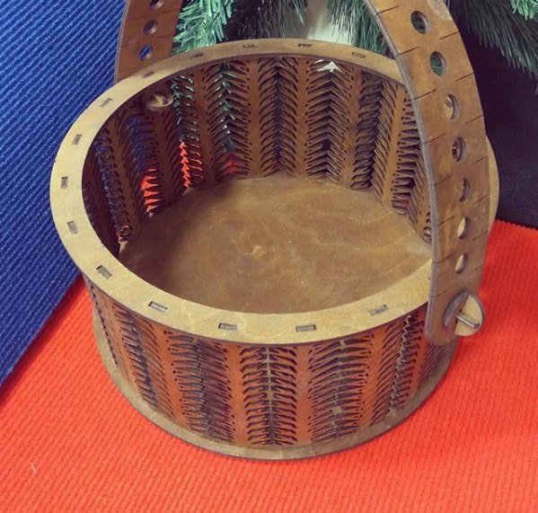 Корзинка для кедровых шишек, выполненная в светлом и темном дизайне. Появилась она благодаря просьбе наших постоянных клиентов, которые пришли с заказом спроектировать легкую, прочную, красивую и оригинальную корзину под шишки. С их слов в городе нет корзинок, выполненых в стиле «лазерной резки». Разных шкатулок скопированных с просторов интернета хоть отбавляй, а вот корзинок.... нет Пришлось придумывать. Методом проб и ошибок мы с задачей справились. По мнению заказчиков на отлично!
