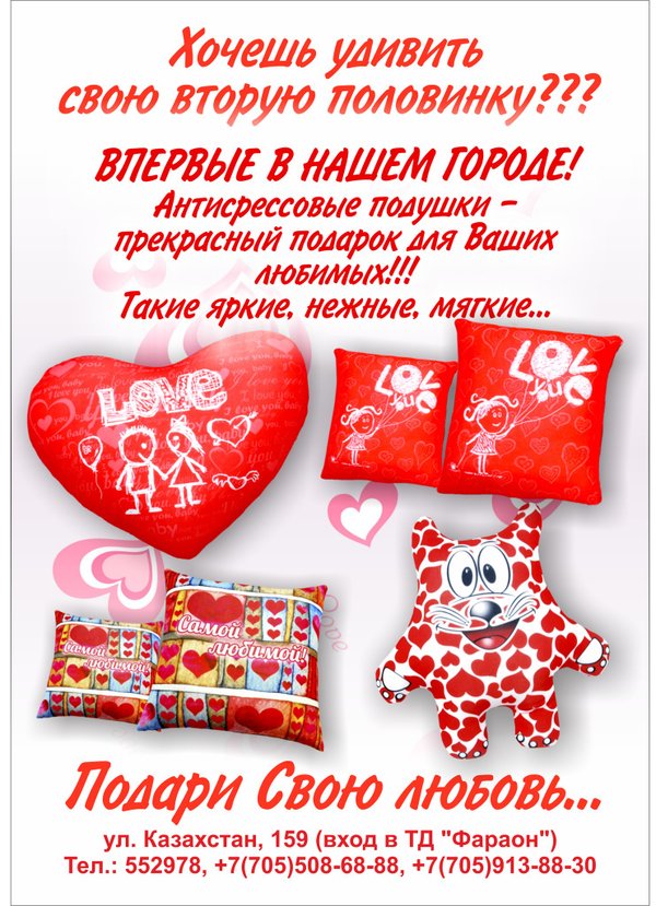 Креативная подушка «Лав», а так же супер-мягкие антистрессовые подушки ждут своих счастливых обладателей!!