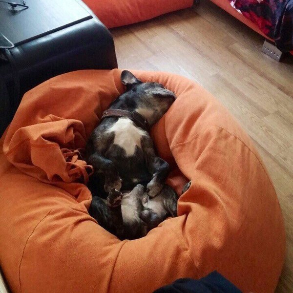 Тот самый случай, когда питомец отобрал у хозяина его любимое кресло-мешок Борьба за место на кресле