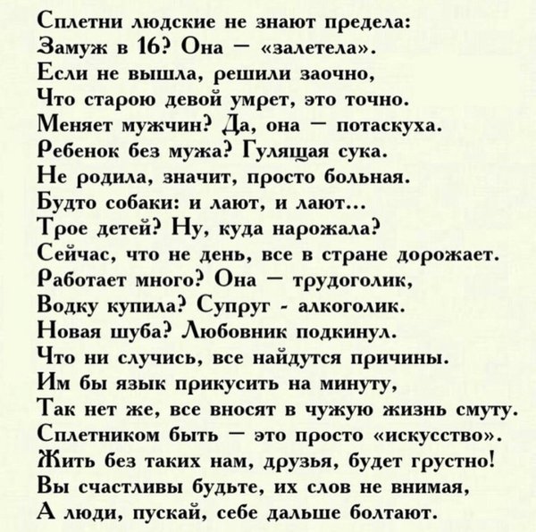 Стихи давно забытого поэта (03.12.2022): Семья это слишком важно. Конечно, на первом месте. Любима и не продажна, А если не так, то взвесьте. Бывайте почаще дома, Пока все здоровы. Живы. Листайте фотоальбомы, Когда за окном дождливо. Звоните сестре и брату, В Москву, Краснодар и Питер. Любите родную хату, И маме цветы дарите. А папе сварганьте ужин, Когда он придёт с работы, Скажите, как сильно нужен, Приятное, в общем, что-то. Целуйте и обнимайте, До хруста, так сильно-сильно. Поменьше в ночи бухайте, С входящими на мобильный. Ходите почаще к… — Читать дальше