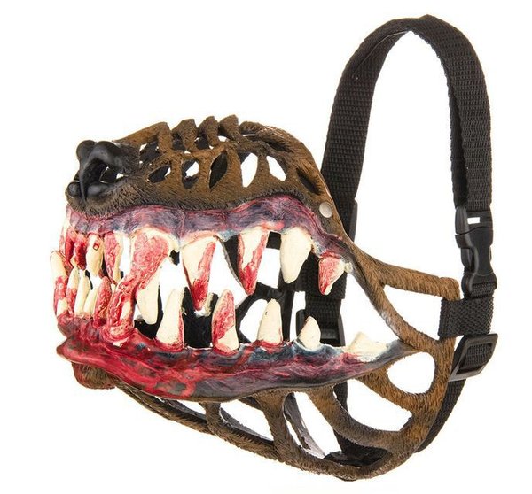 инальный намордник превратит вашего безобидного пса в страшное чудовище. Его задумали для тех владельцев собак, чьи любимцы настолько доброжелательны, что не смогут защитить своего хозяина от хулиганов. А увидев такую необычайно злобную морду, даже самый отчаянный бандит вряд ли решиться напасть на человека, который выгуливает настоящее чудовище. Намордник изготовлен из прочного нетоксичного полиуретанового пластика, покрашен акриловой краской, абсолютно безвреден для ношения собакой. При этом он позволяет приоткрывать пасть и нормально дышать. Внутри кожаная вставка для большего комфорта при ношении. Нейлоновый ремень на пластиковой застежке. Ручная работа! 5 размеров: № 3, обхват морды 20 см № 4, обхват морды 22 см № 5, обхват морды 26 см № 6, обхват морды 31 см № 7, обхват морды 35 см