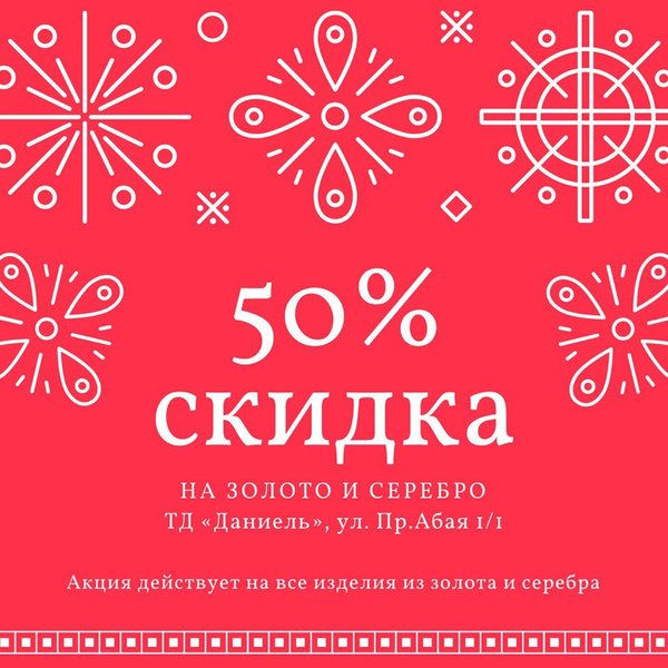 ВНИМАНИЕ!!! Скидки!!! 50% на золото, серебро, изделия с бриллиантами и полудрагоценными камнями Только в отделе Гемма в тд «Даниель».