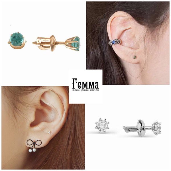 Чаще всего второй прокол делается только на одном ухе. В основных дырочках носят, например, серьги кольца или цепочки, а в дополнительной – пусет. Можно надевать три маленьких одинаковых колечка. Но интереснее смотрятся стильные варианты, сочетающие пару более заметных серег, акцентирующих внимание на себе, и неброской серьги гвоздика из такого же металла или с сияющим камешком.