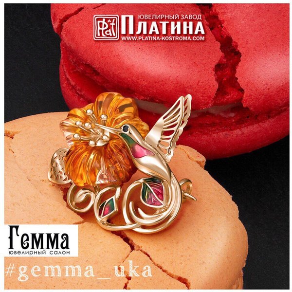 Красота — это Природа, достигшая совершенства… Золотая брошь в виде цветка и милым колибри от ювелирного салона Гемма.