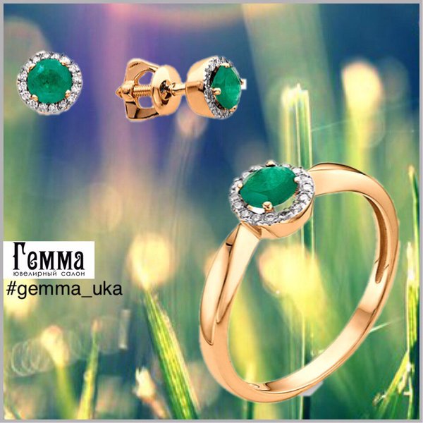 Доброе утро! Пусть оно будет наполнено свежестью и легкостью, как гарнитур от Гемма — золото, фиантины, изумруды. Производитель Алькор.