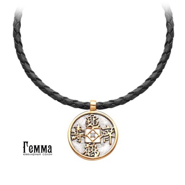 Кожаный шнурок, золотая монета с бриллиантом символ любви и удачи!!!