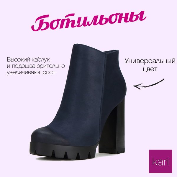 БЛЕСТЯЩИЙ ТРЕНД: ЦВЕТ МЕТАЛЛИК С тех пор, как пару лет назад дизайнеры снова ввели в моду футуристичные металлики, понятие «универсальная обувь» и «универсальная сумка» стали включать в себя не только черный, коричневый и бежевый цвета, но и серебряный с золотым. Читать далее РФ: Читать далее БЕЛ: Читать далее КЗ: kariclub #kari@kariclub