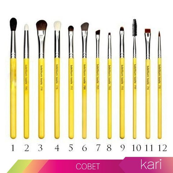 о макияжа. Дает легкое, невесомое покрытие, не плотное. Идеален натуральный ворс. 5. Малая плоская кисть. Позволяет нанести плотным слоем тени на подвижное веко. Классическая кисть. Идеален натуральный ворс. 6. Скошенная кисть. Может использоваться как плоская кисть для нанесения теней на подвижное веко, также для прорисовки складки веко и даже для растушевки. Идеален натуральный ворс. 7. Малая скошенная кисть. Подходит для формирования бровей. Идеален искусственный ворс. 8. Супер-малая скошенная кисть. Подходит для формирования бровей, гелевой подводки. Из-за маленького размера позволяет добиться высокой точности. Идеален искусственный ворс. 9. Кисть для растушевки карандаша/подводки. Кисть работает как спонж. Легко растушевывает карандашную линию благодаря короткому и упругому ворсу. Идеален натуральный ворс. 10. Щеточка для ресниц/бровей. 11. Плоская нейлоновая кисть. Благодаря своей форму, кисть идеально подходит для рисования супер-тонких линий. Можно использовать как для жидких и кремовых текстур, так и для сухих. Идеален искусственный ворс. 12. Кисть для подводки. Позволяет рисовать идеальные стрелки любой подводкой. Отлично прорисовывает ресничный край. Идеален искусственный ворс.