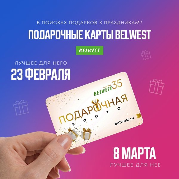 В магазинах обуви BELWEST теперь доступны подарочные карты, которые можно приобрести на любую сумму от 1000 ₽.