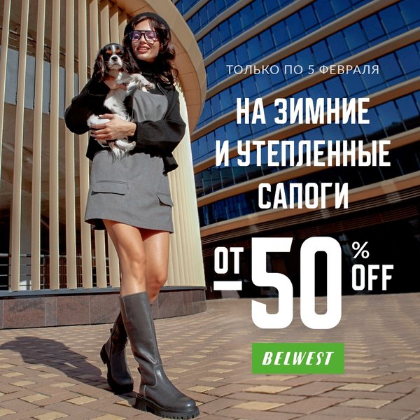 Зима близко, а скидки уже здесь! Только сейчас до -45% на стильную и тёплую зимнюю обувь в магазинах BELWEST! Мягкая кожа, тёплый мех, удобная колодка - всё, что нужно, чтобы встретить зиму красиво и с комфортом. Количество товара ограничено! Ждем вас на сайте belwest.com и в наших фирменных магазинах