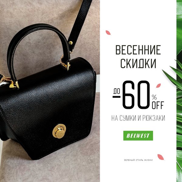 Скидки до 50% на самые любимые аксессуары всех женщин По 5 ноября приобретайте сумки по выгодной цене. Ждем вас на сайте belwest.com и в магазинах BELWEST. *акция действует на выделенный ассортимент.