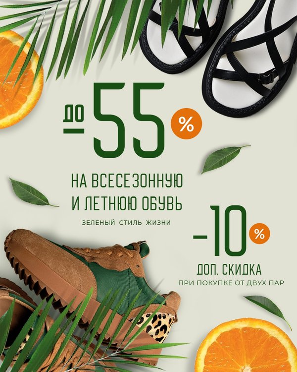 • скидки до 55% на всесезонную обувь из прошлых коллекций
