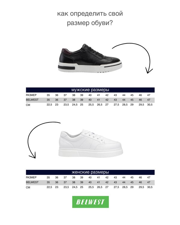 Кроссовки BELWEST уже здесь! Кроссовки давно перестали быть исключительно спортивной обувью — сегодня это базовый элемент гардероба, который сочетает в себе комфорт и стиль. В подборке BELWEST вы найдете модели как для женщин, так и для мужчин. Модели подойдут для любых случаев: от прогулок по городу до активных будней. Не откладывайте и выбирайте свою пару уже сегодня на сайте и в магазине BELWEST.