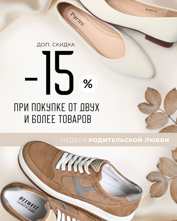 С Неделей родительской любви! Пусть этот праздник напомнит нам о самом главном: о близких и родных людях. Пусть в каждом доме царят мир, любовь и понимание, а семья будет самой надежной опорой и источником безграничного счастья. А в связи с Неделей родительской любви мы решили вас порадовать, поэтому при покупке двух и более товаров вы получите дополнительную скидку еще 15% от суммы чека. Ждем вас на сайте и в магазинах BELWEST. *акция действует только на территории Республики Беларусь