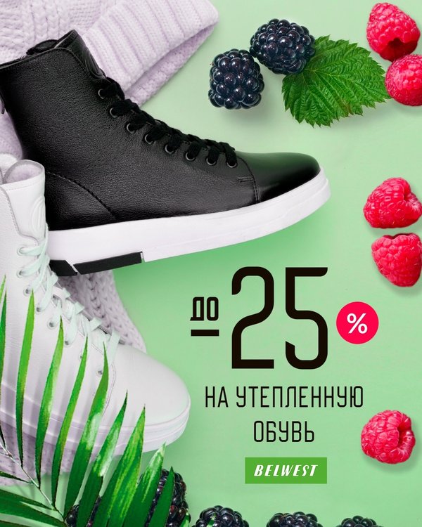 Скорее смотрите подборку обуви и выбирайте свою идеальную пару. • Скидка до 35% на зимнюю обувь • Скидка до 55% на утепленную обувь *акция действует на выделенный ассортимент. *акция действует на территории Республики Беларусь. ⏰ Торопитесь! Количество товара ограничено. Ждем вас в магазинах вашего города и на сайте BELWEST
