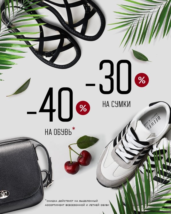 Скидки до 30% на летнюю обувь из прошлых коллекций.